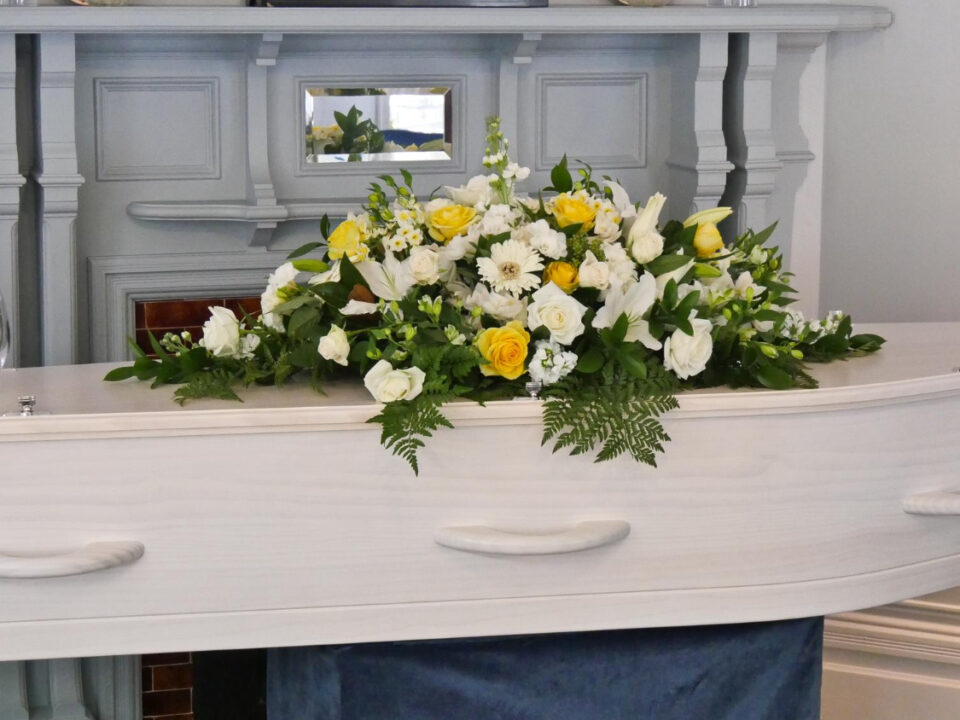 Se la famiglia lo desidera, per l’estremo saluto, ci occupiamo degli addobbi funebri e degli allestimenti della camera ardente. Fiori per funerali e allestimenti studiati ad HOC per accompagnare il ricordo dei nostri cari che, purtroppo, non sono più con noi. Cuscini di fiori, corone di fiori colorati, cesti floreali e cofani ai quali affidare un tenero e caro ultimo saluto. Cesti e cofani con fiori di stagione, corone con fiori caldi, composizioni dai colori tenui e armonici, colorazioni rosa, bianche, lilla e gialli, cuscini per accompagnare il feretro e la commemorazione.