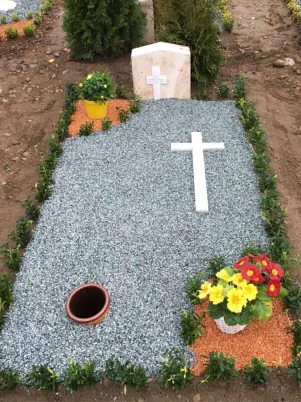Mettiamo in opera giardinetti in ghiaia di colore e spessore differente definendone il perimetro con piantine o ciottoli di pietra per abbellire la tomba in attesa del monumento funebre e consentire un corretto assestamento del terreno prima di porvi sopra pesi che potrebbero causare delle problematiche. Anche l’allestimento del giardinetto per tomba sarà concordato con le famiglie, che potranno scegliere cosa apporvi, composizioni floreali particolari e dati identificativi del defunto.